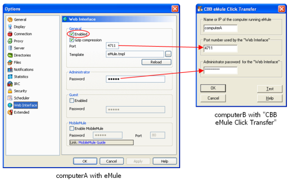 At the end of the installation run "CBB eMule Click Transfer" and enter the parameters like it is explained in the picture bellow.